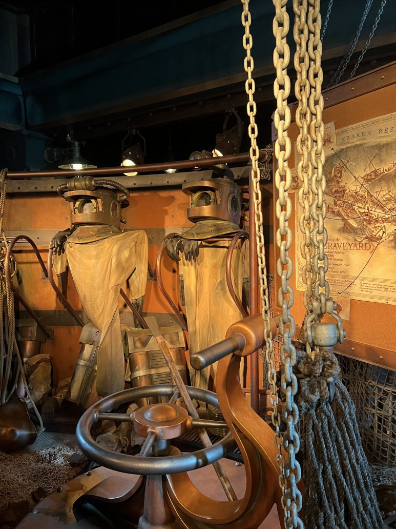 그리고 해저 2만마일 (20,000 Leagues Under the Sea)은 사람이 많이 없는 편이라 타봤는데 괜찮았다. 솔직히 놀이기구 자체는 재밌다 까지는 아니었지만 타러가기까지 정말 잘 꾸며놔서.. 심지어 내가 제일 좋아하는 작가 '쥘베른'의 소설 해저 2만리가 모티브가 된 영화를 배경으로 만든 거라서 그런지 굉장히 흥미롭게(?) 기다렸다 히히